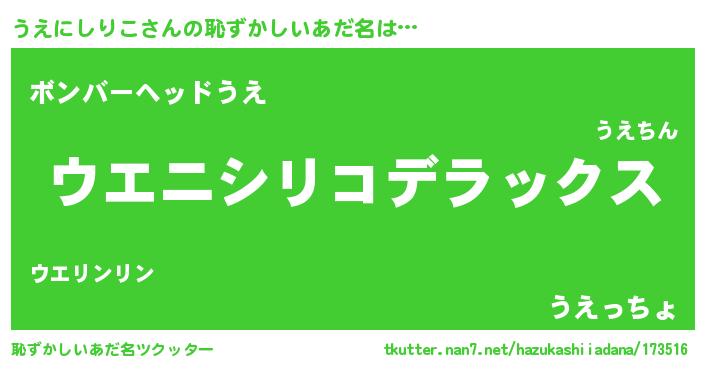 | 男性向けラノベタイトル風あだ名 | 『緋弾のウエニシリコ』 |