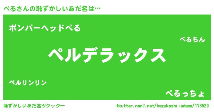 | ヘコむあだ名 | 『つくし』『ぺる(笑)』『ぺるを』 |
