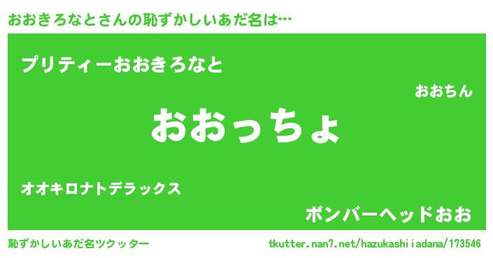 | 男性向けラノベタイトル風あだ名 | 『おおきろなと~年齢イコール彼女いない歴の魔法使い~』 |