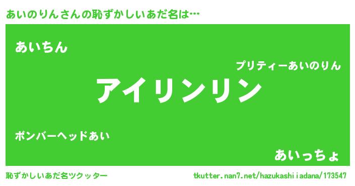 | 男性向けラノベタイトル風あだ名 | 『あいのりんに滅ぼされるだけの簡単なお仕事です』 |