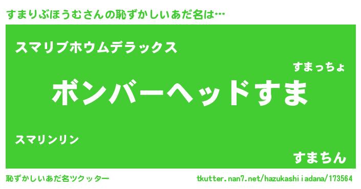 | ヘコむあだ名 | 『すまりぶほうむ(爆)』『酢こんぶ』 |