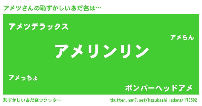 | ヘコむあだ名 | 『アメっぺ』『アメツ(震え声)』 |