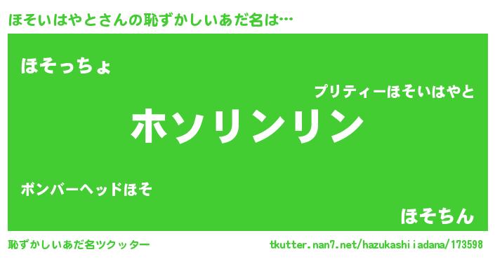 | ポケモン風あだ名 | 『ヒホソイハヤト』『ホーソイ』 |