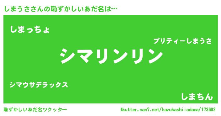 | 意味不明あだ名 | 『とにかく怪しいしまうさ』 |