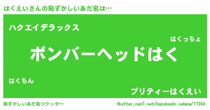 | 欧米人風あだ名 | 『ダニエルはくえい』『マイケルはくえい』 |