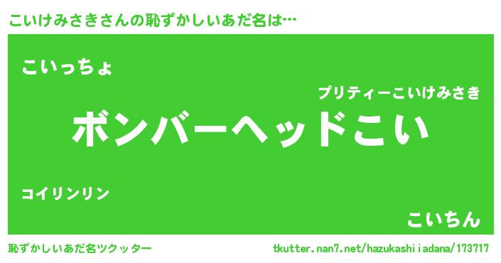 | 女子向けラノベタイトル風あだ名 | 『こいけみさきの玉の輿計画!』 |