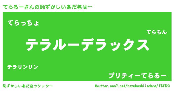 | 意味不明あだ名 | 『ニラ科てらるー属』『自称てらるー』 |