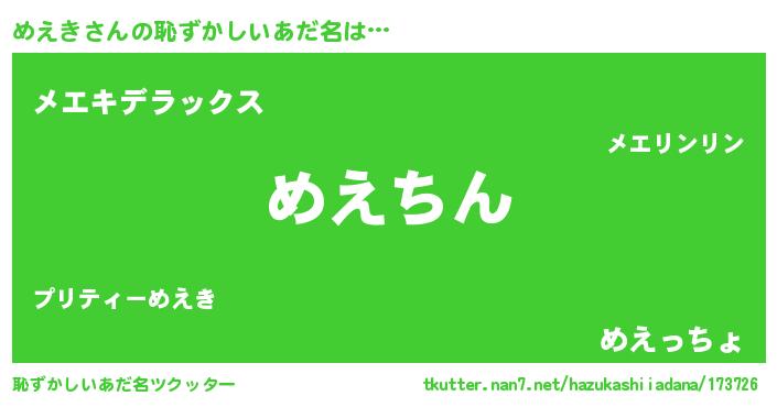 | 意味不明あだ名 | 『永久保存めえき』『自称めえき』 |