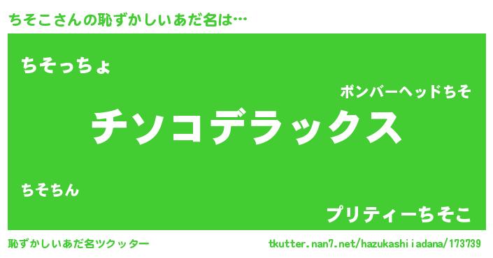 | 意味不明あだ名 | 『なめこ科ちそこ属』『自称ちそこ』 |