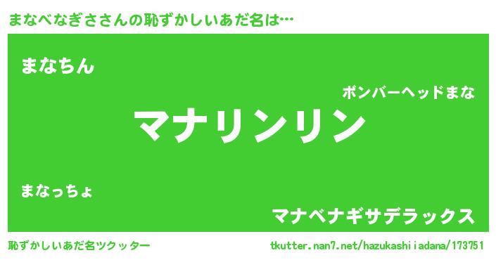 | ヘコむあだ名 | 『まなっちょ』『まなべなぎさ(笑)』 |