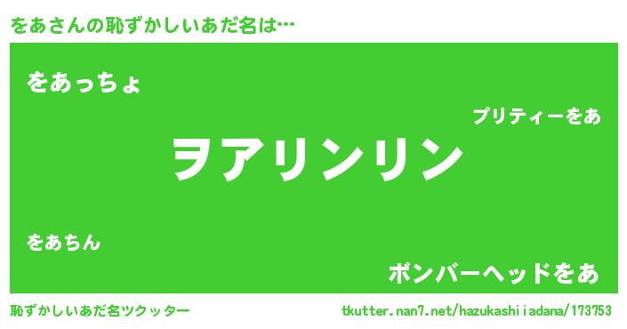 | ポケモン風あだ名 | 『ヒヲア』『ヲアダネ』『ヲックウザ』 |