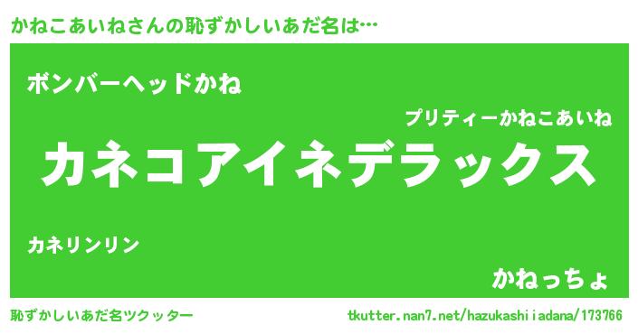 | ヒーロー風カッコイイあだ名 | 『仮面カネダー』『スーパーカネコアイネ』 |