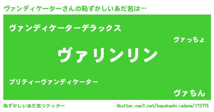 | 男性向けラノベタイトル風あだ名 | 『ダンジョンにヴァンディケーターを求めるのは間違っているだろうか』 |