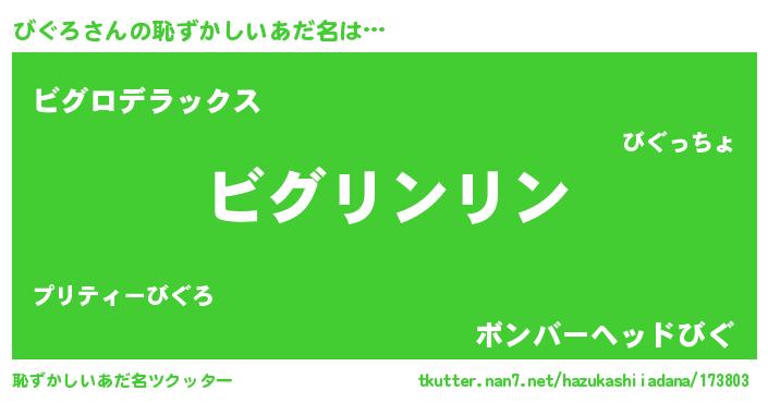| ヘコむあだ名 | 『びぐを』『つくし』『びぐふぇ~』 |