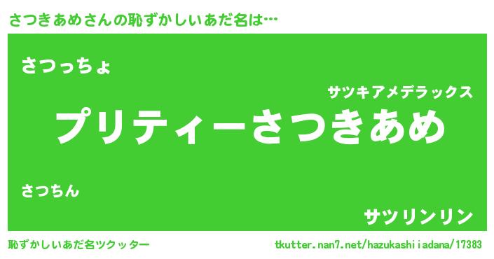 | ファンタジー風あだ名 | 『サツフェル』『エターナルサツキアメー』 |