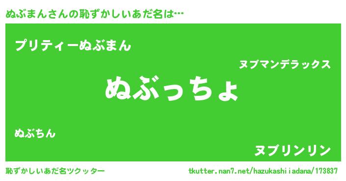 | 意味不明あだ名 | 『ぬぶまんフォーエバー』 |