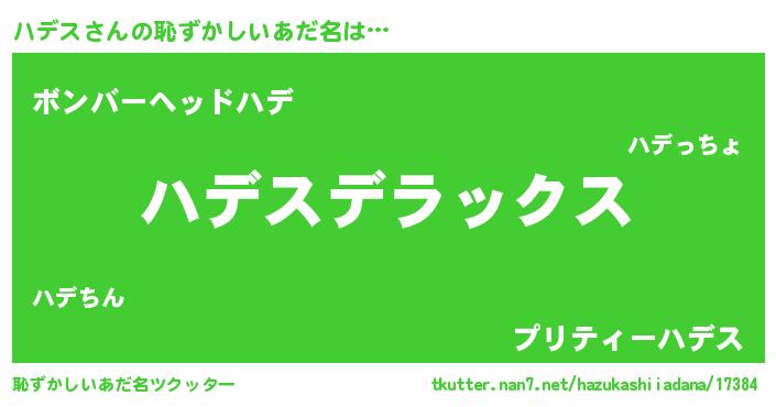 | 意味不明あだ名 | 『住所不定無職ハデス(40歳)』『自称ハデス』 |