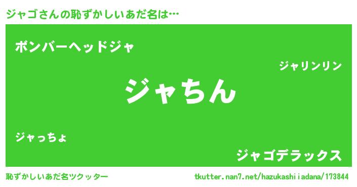 | ヘコむあだ名 | 『ジャゴ(笑)』『ジャを』『豆乳』 |