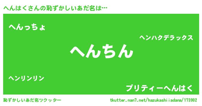 | ヘコむあだ名 | 『へんはく(苦笑)』『つくし』 |
