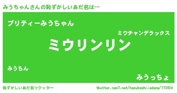 | ポケモン風あだ名 | 『ミウゴンZ』『ヒミウチャン』 |