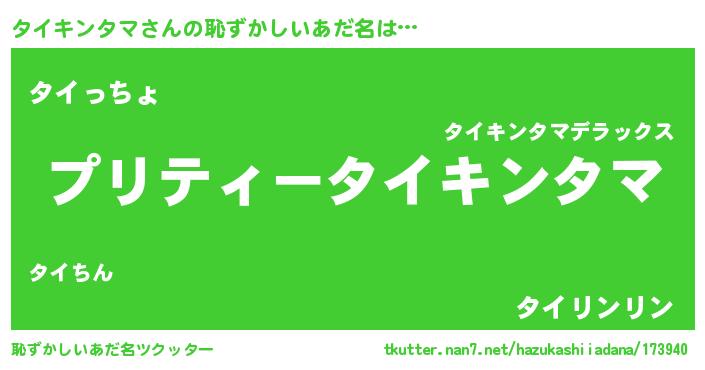 | ヒーロー風カッコイイあだ名 | 『スーパータイキンタマ』『黄金騎士タイ』 |
