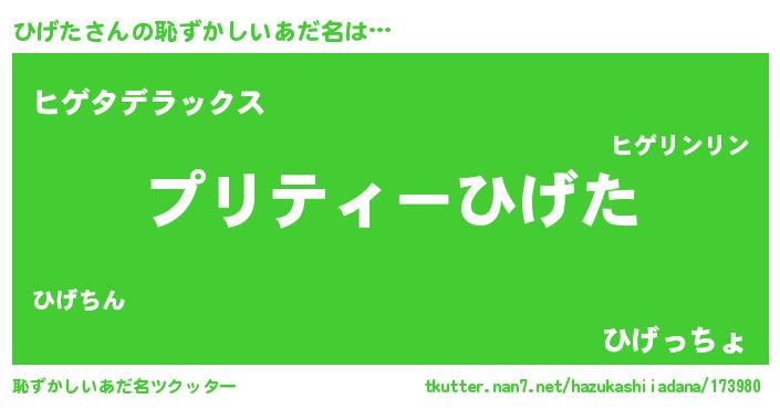 | 男性向けラノベタイトル風あだ名 | 『ヒゲタアートオンライン』 |