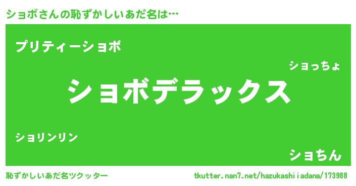 | 意味不明あだ名 | 『自称ショボ』『ペロリンショボ』 |