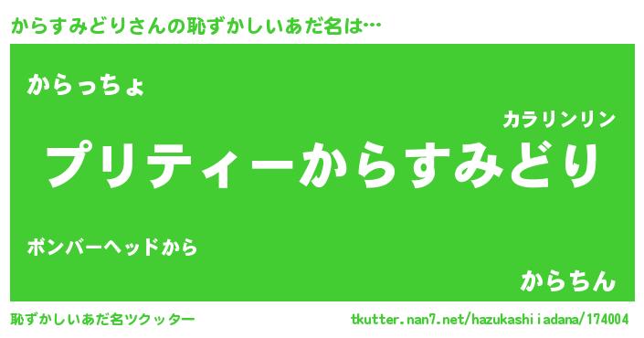 | ヒーロー風カッコイイあだ名 | 『スーパーカラスミドリ』『幻影騎士カラ』 |