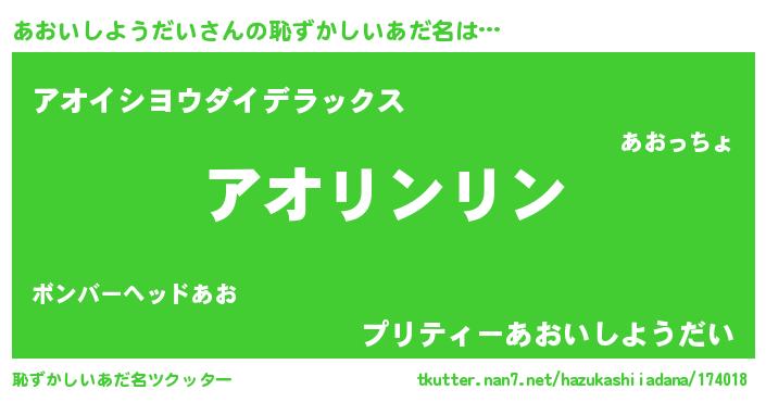 | 意味不明あだ名 | 『住所不定無職あおいしようだい(4歳)』 |