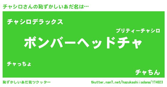 | ヒーロー風カッコイイあだ名 | 『慈愛の使者チャシロ』『ネオチャシロ』 |