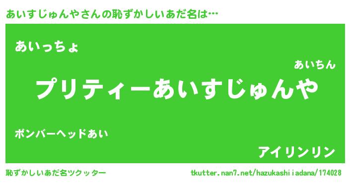 | 男性向けラノベタイトル風あだ名 | 『あいすじゅんやの憂鬱』 |
