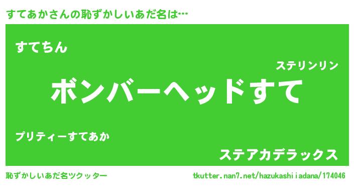| 意味不明あだ名 | 『住所不定無職すてあか(68歳)』 |