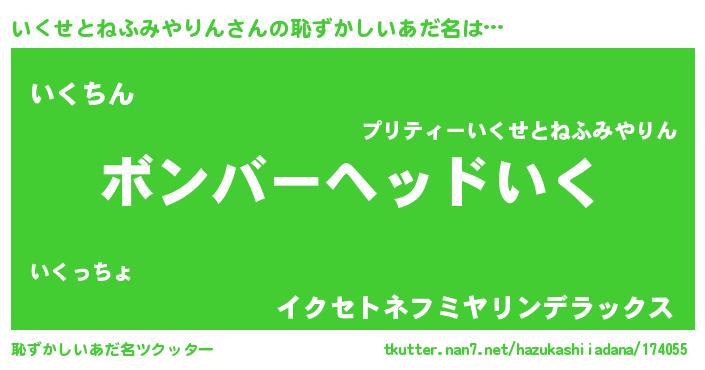 | ヒーロー風カッコイイあだ名 | 『慈愛の使者いくせとねふみやりん』 |