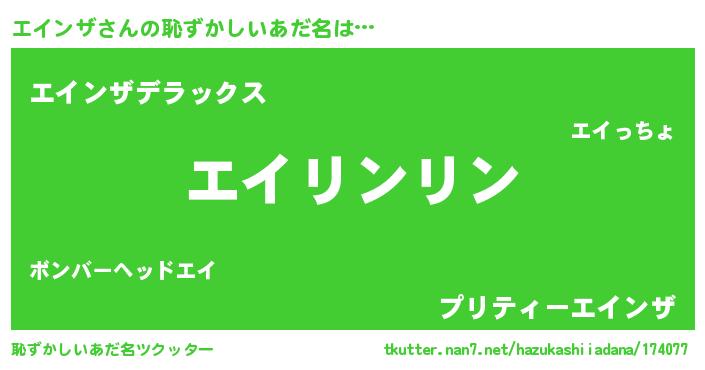 | 男性向けラノベタイトル風あだ名 | 『ダンジョンにエインザを求めるのは間違っているだろうか』 |
