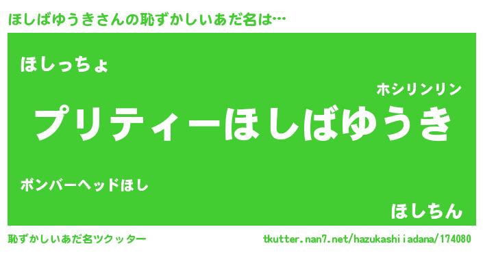 | 胡散臭い通販商品みたいなあだ名 | 『必ず成功するブレスレット…その名も「ほしばゆうき」』 |