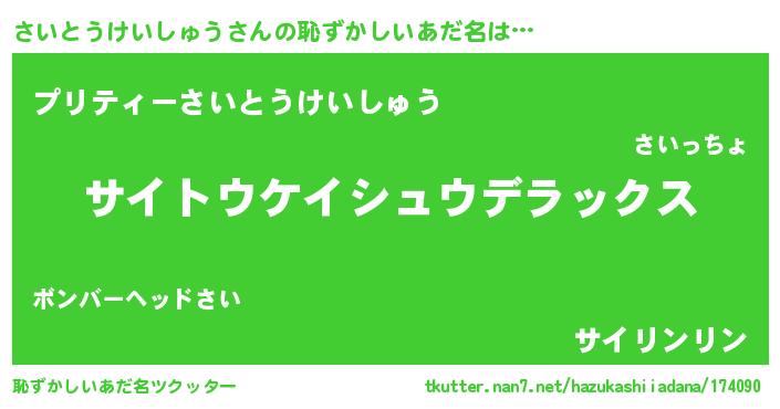| 意味不明あだ名 | 『自称さいとうけいしゅう』 |