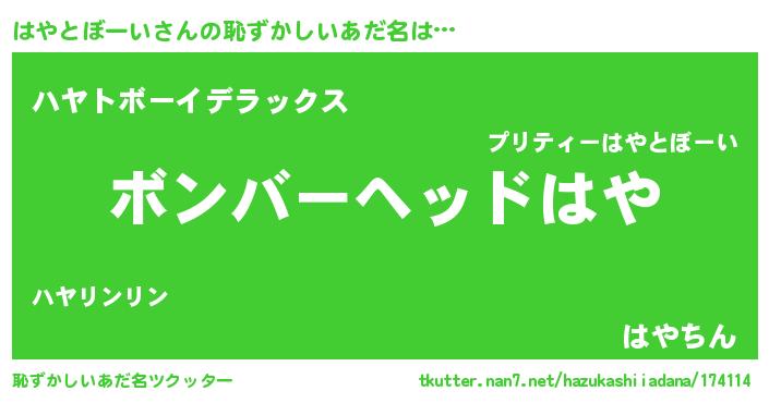 | ヘコむあだ名 | 『はやとぼーい(苦笑)』『はやもー』 |