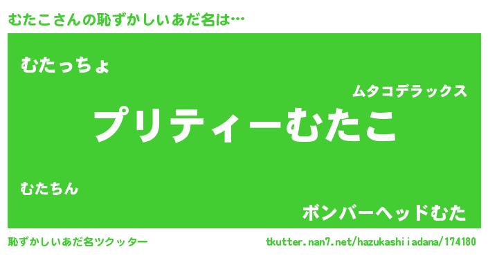 | 意味不明あだ名 | 『ペロリンむたこ』『むたこフォーエバー』 |