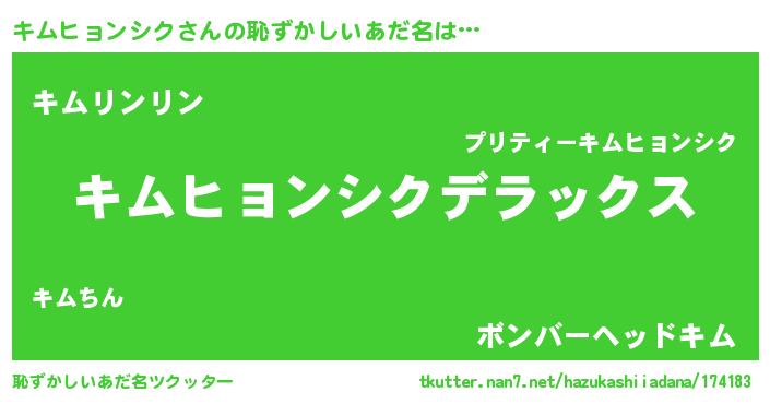 | 意味不明あだ名 | 『住所不定無職キムヒョンシク(10歳)』 |