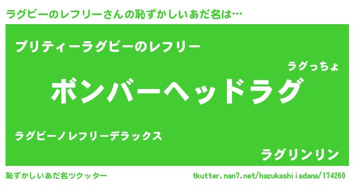 | ヘコむあだ名 | 『ラグにゅー』『ラグぷりん』『豆乳』 |