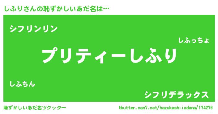 | ヘコむあだ名 | 『しふにー』『しふぷりん』『つくし』 |