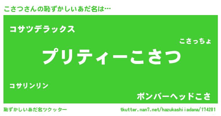 | ヒーロー風カッコイイあだ名 | 『スーパーコサツ』『最強戦士コサツ』 |
