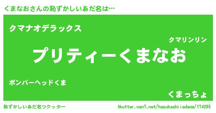 | 意味不明あだ名 | 『住所不定無職くまなお(89歳)』 |