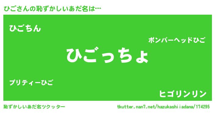 | ピコ太郎風あだ名 | 『ピヒ太郎』『ピコヒ郎』『ヒゴ六郎』 |