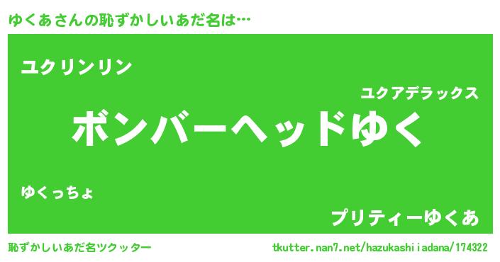 | 意味不明あだ名 | 『眠気覚ましガムゆくあ味』『自称ゆくあ』 |