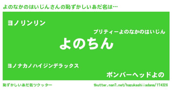| ヘコむあだ名 | 『よのなかのはいじん(震え声)』『よのっ子』 |