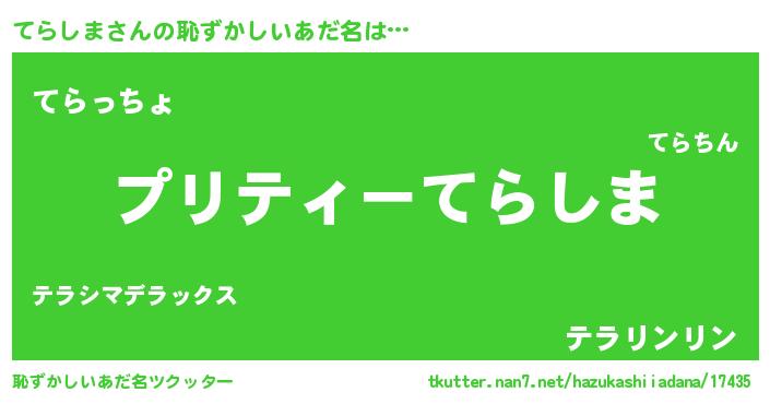 | ヘコむあだ名 | 『てらにゅー』『酢こんぶ』『てらを』 |