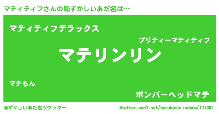 | 可愛いあだ名 | 『マっテぃー』『マテうちぇる』 |