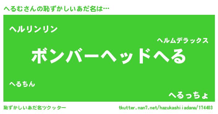 | ヒーロー風カッコイイあだ名 | 『天空の使者へるむ』『幻影騎士ヘル』 |