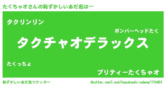 | 意味不明あだ名 | 『住所不定無職たくちゃオ(81歳)』 |